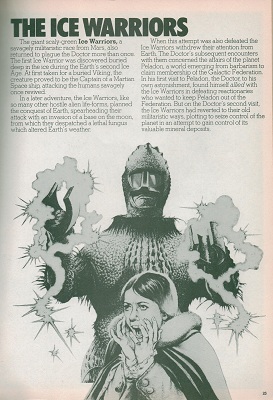 "We could show you a photo. But it wouldn't have magic hands."The chronology is uncertain here. Even geology can be fragmented, or in our case fragmentised. I think - I think - this meta-knowledge of the game's rules may have come from The Doctor Who Monster Book. This was an invaluable item, so naturally, I'd fondly dissected it and sellotaped its innards across my bedroom wall. Anxious Sensorites watched over me long before I understood that it's more usual to set pop stars or footballers to guard one's sleep. With the Target novelisations (and most especially the Target covers) so blissfully confident that they were producing a higher form of Doctor Who than the BBC, there was a whole double-page spread of Achilleos' Omega with his talons extended into the Three Doctors' foreheads. Is that when I learned about the Doctor's "biological kabuki", then? Because if so, I would've expected to remember the shock of having it explained to me.