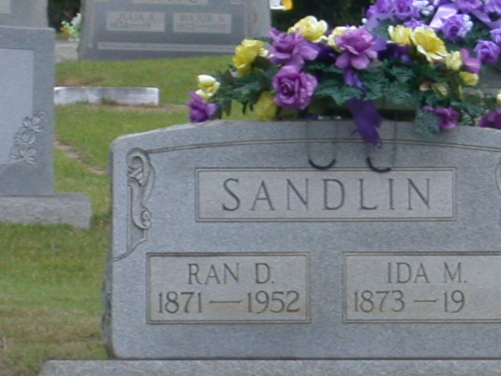 My great-grandparents' headstone. I named a soon-to-be-very-major character in my urban fantasy series after Ran (which was short for Randolph, and the character's name is Quince Randolph), and Ida's maiden name was Jaco, another name that's important in the UF series.