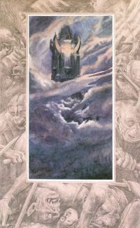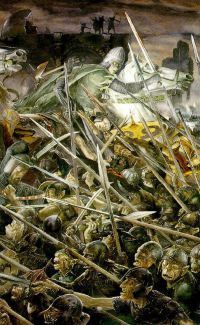 Having been refused, the Mouth of Sauron returns to the Gate and the host of Mordor falls upon them. They appear to be getting overrun, and Pippin is pinned under the body of a Troll after it is killed. All seems lost, just as the Great Eagles begin to come in and fight off the Ring Wraiths…