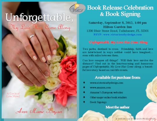 You are cordially invited to ANN MARIE BRYAN’S Book Release Celebration and Book Signing for Unforgettable, My Love Has Come Along!