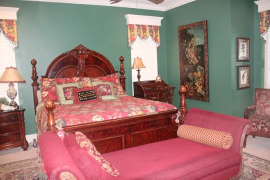 This bedroom wasn’t just a bedroom; it was an entire wing of the house. Such opulence you wouldn’t believe. An exquisite Persian rug covered the floor and felt lush beneath our stocking feet (visitors had been asked to remove their shoes at the door). The walls were adorned with priceless works of art—all original oil paintings or signed and numbered prints. Two overstuffed armchairs flanked the marble fireplace, a gleaming silver tea service perched atop an antique tray table between them. A beveled mirror in an ornate frame hung above the mantle to camouflage the high definition television built into the wall behind it.