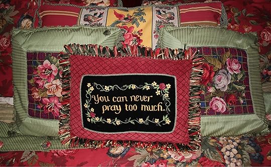 If you were to visit our home today, you would find a spacious master suite, complete with plush Persian rug and four-poster bed. The dust ruffle, duvet, and a mound of pillows were custom-made by me in complementary colors, textures, and patterns. And there in the center of it all, you would find a beautiful little velvet cushion, hand-embroidered with silk ribbon roses and tiny glass beads.