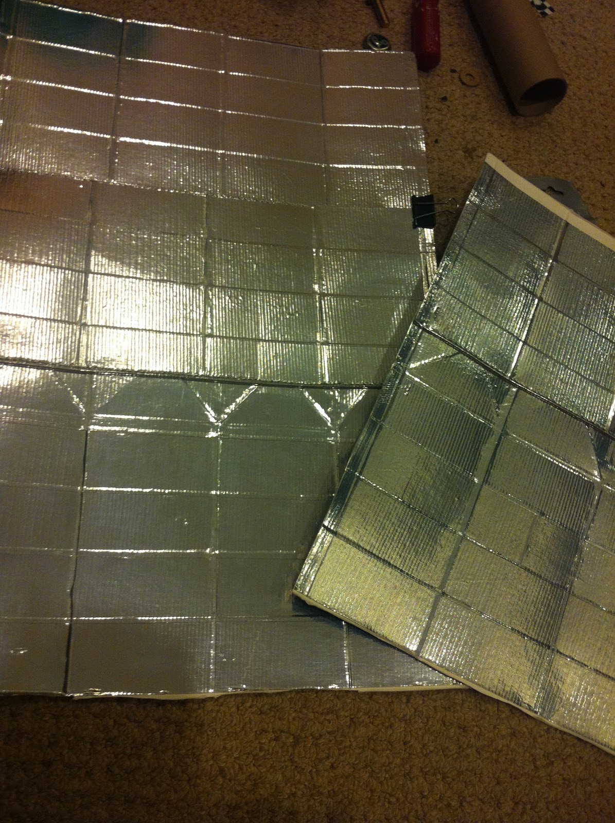 To get Walter to the beach in style, I made him a sock monkey size trailer out of juice cartons, silver chrome duct tape, tin cans, bottle caps, wire thread, paper towel roll, and a wooden dowel. Here are some photos of its construction.