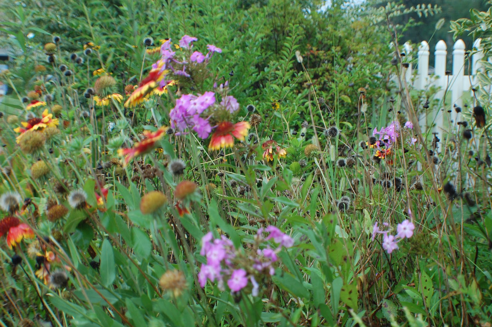 It's a little taken over by weeds, but still nice. I love the white picket fence.
