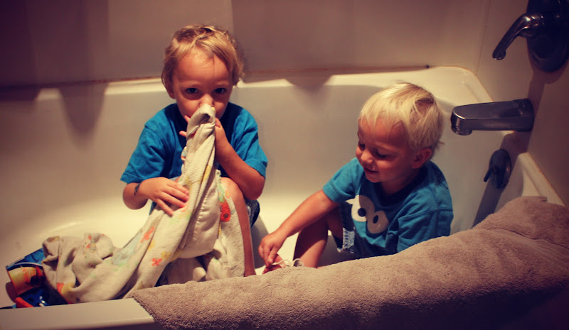 Later, I found them in the tub again.I'm glad I caught them before they turned on the water! (This time!)