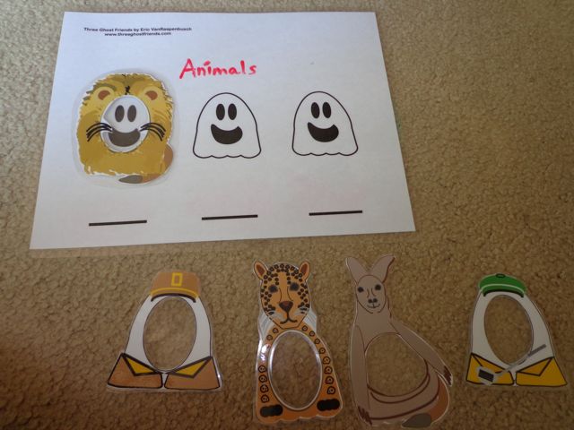 How many days until Halloween? Too many! But, I have been busy making activities for the latest Three Ghost Friends book, Three Ghost Friends: Learn About the ABCs - Halloween Edition. In this book, the Three Ghost Friends hope to find just the right costumes to wear for Trick or Treat. It proves to be difficult with at least one ghost friend not wanting to follow the theme. They try on animal costumes, fruit costumes, community helper costumes, and even SCARY guy costumes. Thankfully, the Three Ghost Friends eventually find the perfect costumes to wear.From the moment the book was complete, I wanted to create a way for children to have fun dressing up the Three Ghost Friends in all the costumes. Additionally, I also wanted to provide a way for parents and teachers to explore the concept of categorizing with their child or student.