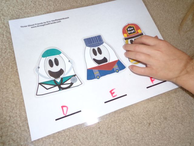 2. Write a letter on each line below the ghosts with a dry erase marker.