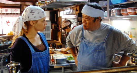 . I remembered Anthony Bourdain talking about that film during theHokkaido episode of No Reservations. He described it quite accurately and without derision but doubted the heroine's addition of corn to her ramen. He found out that this was common to Sapporo ramen. I was surprised that Joel suggested what was a chick flick to me. I don't watch them as a rule, but I was intrigued. It was the tale of a young woman who is dumped by her boyfriend shortly after arriving in Japan. In despair, she finds herself in the local ramen shop. The soup makes her so happy that she decides to learn how to spread such joy. It was quite charming. You can see the trailer here: http://www.youtube.com/watch?v=1GYSwiaNz2o