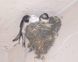 Аз лично видях само черните лястовичета, бялото беше отишло в този момент да закусва, но Димитринка ми изпрати снимка.