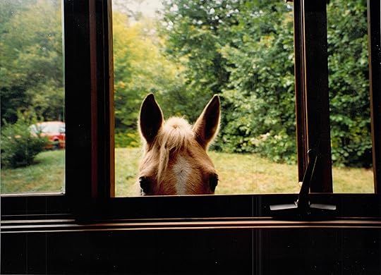 I leave you now with a photo from years past of our sweet Arabian palomino Bailey, looking in my (then) office window, watching me at work. (I think she’s saying: Ahem! I need my forelock combed!)