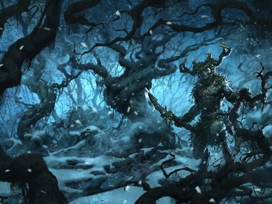 Quick update! The Vaults of Winter has some cover art, courtesy of the talented Slawomir Maniak and I’ve just crossed the halfway mark. I’m 50,000 words in and finding that wearing antlers is a great way to stay focused. The cats aren’t too impressed though.