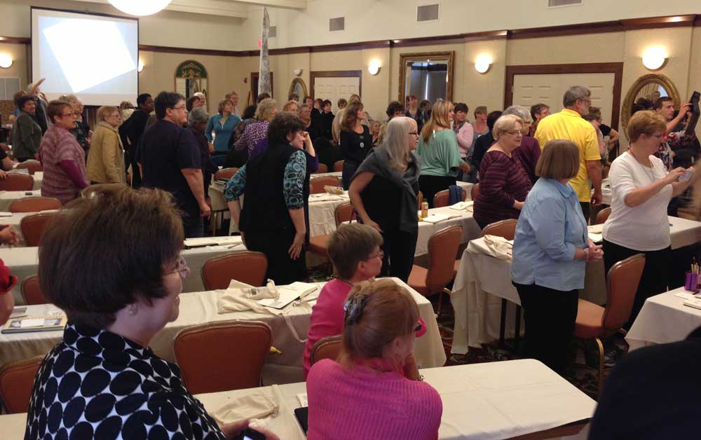 Maria Thomas and Rick RobertsWe got to sit in on the last leg of the program and learned a new tangle pattern - it's a little like Tripoli, but... different. ;-D It will probably be in one of the future Zentangle newsletters, but for now, you have to wait patiently and curse me under your breath. (I'll redeem myself in a minute, maybe). I got to talk to a whole bunch of people - some of you who are reading this - "Hi folks!!!", a few who were at my UN-Tangled retreat in March, a few who are coming to the one in November, and a bunch of my customers. I was thrilled to meet the Ukelele guy, Jason, too. Actually, I just realised, there were more men at this session than I have ever seen before... that's a very good sign!