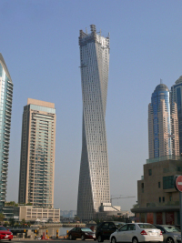 Behold, a building measuring some 73 stories, roughly a third of a kilometer in height. Now imagine that it has a twist of 90 degrees built into its frame, basically forming a corkscrew or the shape of a piece of fusilli. Now imagine, on top of all that, that it rotates, thus ensuring that the twist in the frame is perpetually twisting. Located in Dubai, the Infinity Tower is not only part of that city’s extensive building program. Once completed, it will be the tallest the building in the world to be helical in shape and to rotate.