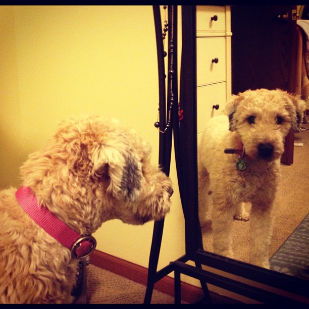 "She's looking at the pup in the mirror. She's asking if she'll change her ways..."