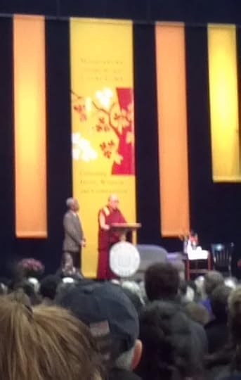 Getting tickets for this event was like trying to get into a sold-out rock concert. The morning the tickets went on sale, I got up early, went to my computer, and sat there pressing the refresh button until the ticket purchase page finally showed up for me, 45 minutes later. I believe their servers were a little overwhelmed. This investment of time and button-pushing was nothing compared to what I received from the experience. One of the things I received was some glint of understanding of how you and I the Dalai Lama are the same.