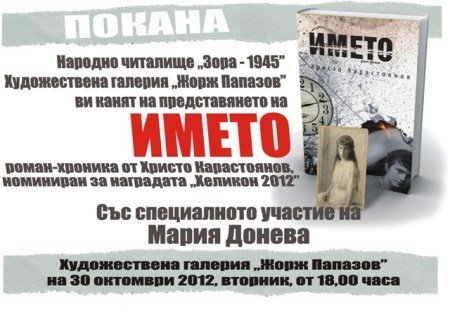 Премиера на “Името” – роман-хроника от Христо Карастоянов, в Ямбол