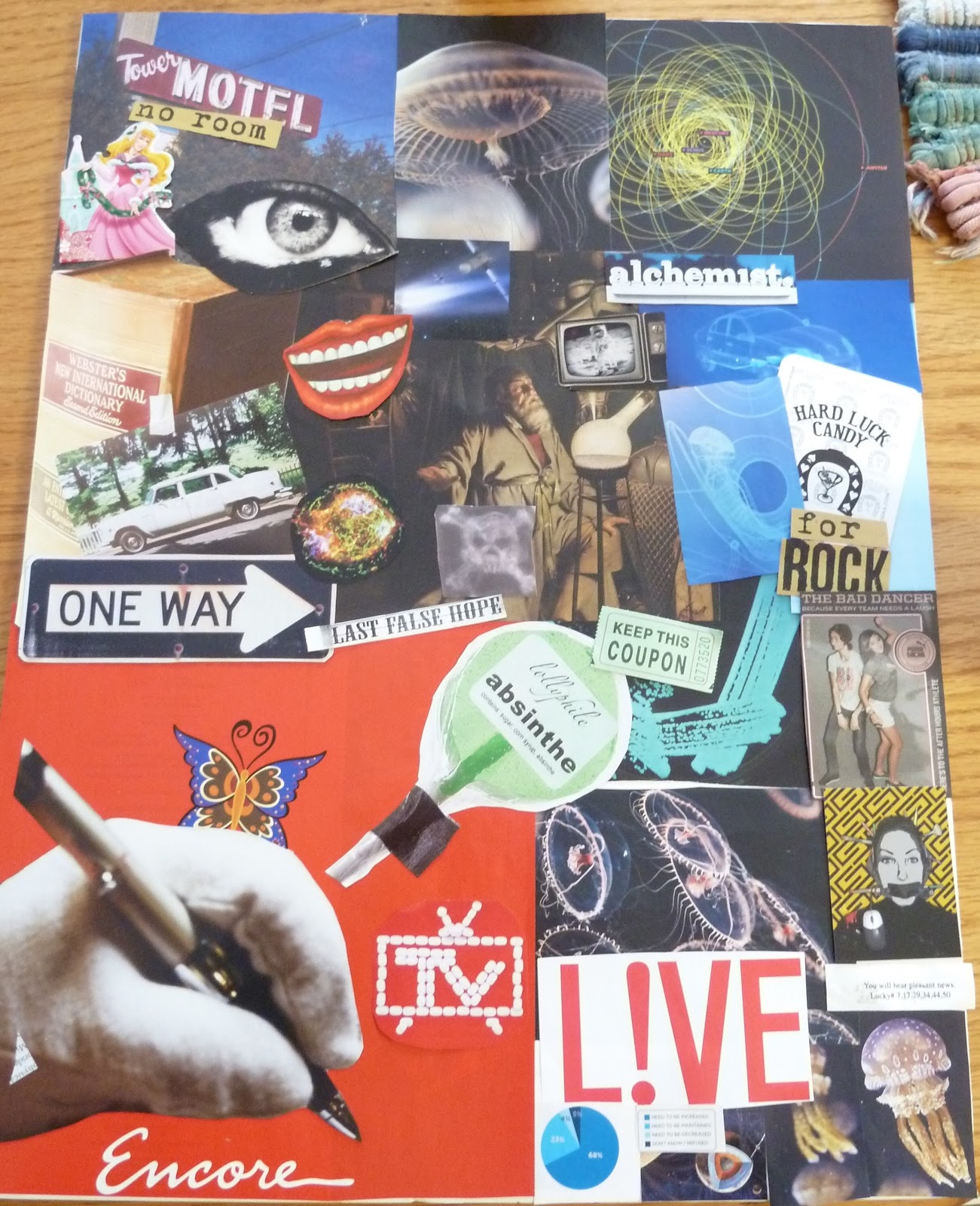 I've been collecting elements for this collage for a couple of years and today was cut n' paste day. Drying now.