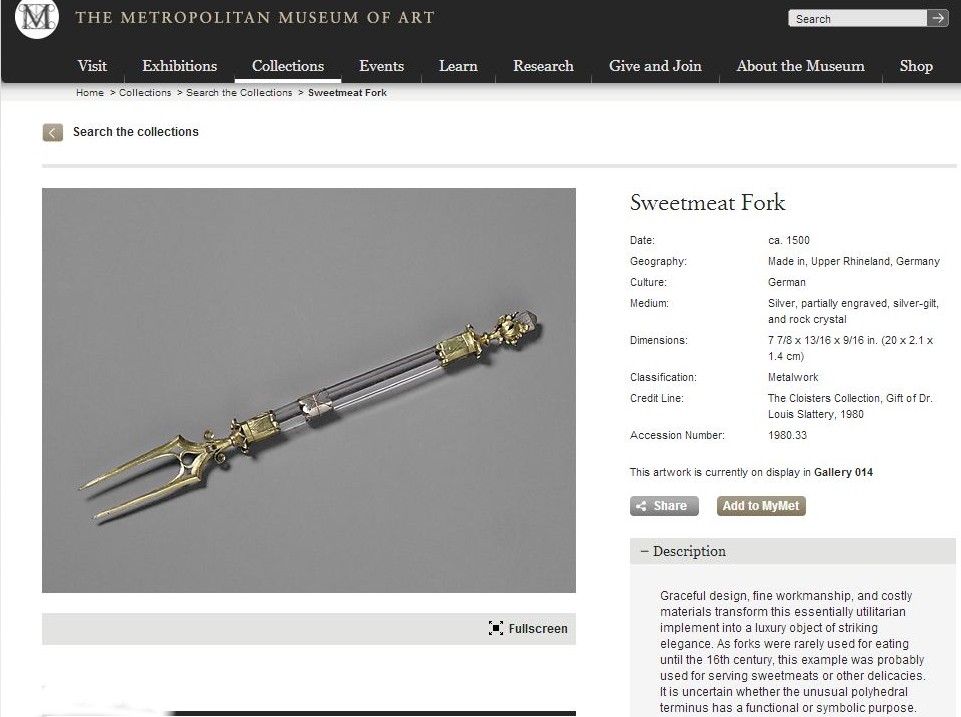 Forks from Iran 8th/9thC. Items like this slowly made their way intoEurope as eating utensils