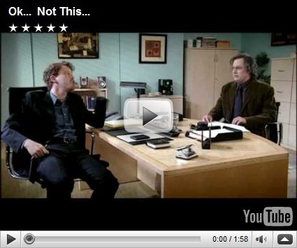 The video features an editor trying to get a writer to change his manuscript—and coming up with confusing and bizarre storylines for the author to develop. The hapless writer is trying to make connections between his plot and the outlandish ideas the editor is dreaming up.
