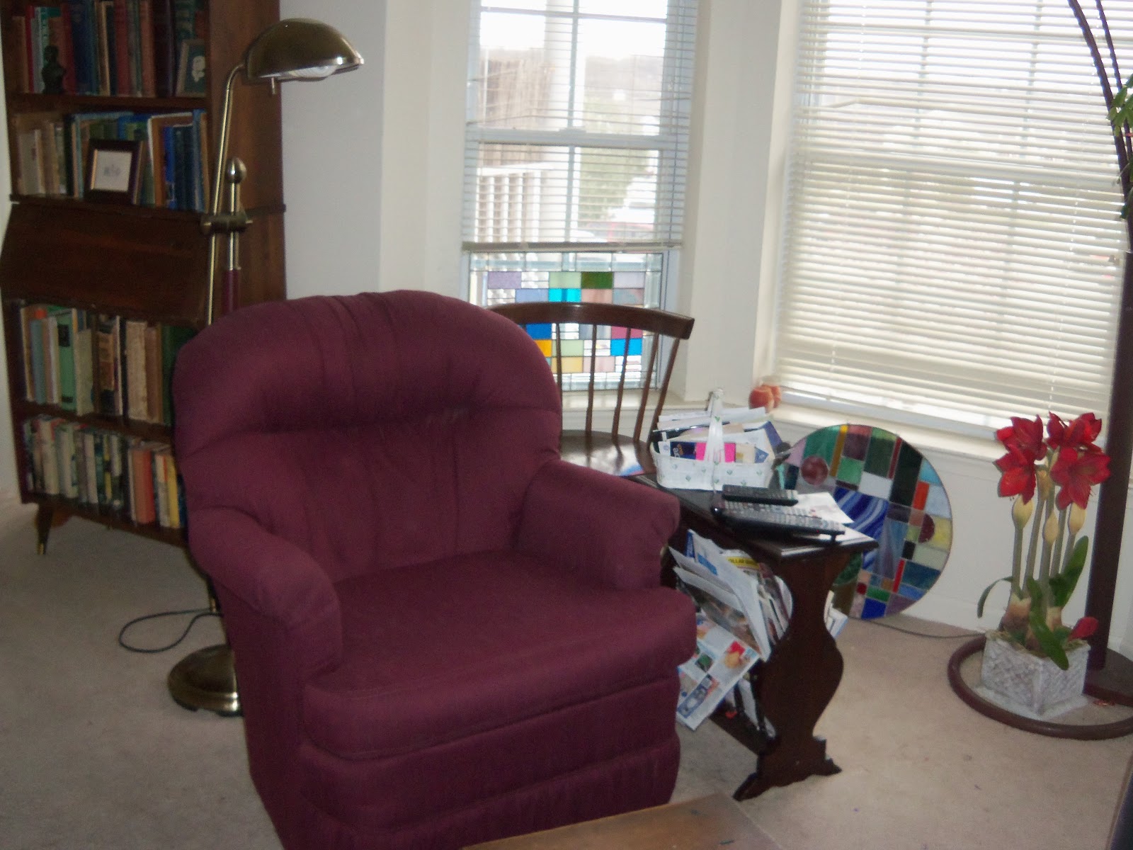 When the check came (and my agent hadn't lied about the amount, thank goodness) I zipped over to the bank and deposited it gleefully. And I turned the chair around.