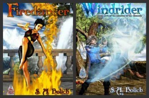 Firedancer and its sequels in my Masters of the Elements series are about as big a departure as I could make from the usual S&S tropes. I really, really wanted to leave the usual villains and plots behind and focus on something different. Hopefully, I achieved it in making my antagonist completely non-human: living fire. The elementals, Wind, Water, and Fire, are the children of the Earth Mother, but have long since grown beyond her direct control. Thus, she created the talented clans to hold them in check: Firedancers, Windriders, Water Clans, and Delvers–but the elementals are challenging that ancient magic, and no one knows why. Will it hold? Will the world end in fire or flood or destruction by the mad, uncontrollable Hag blowing all to ruin before her?
