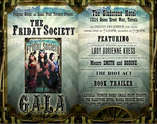 Well, the book launch for THE FRIDAY SOCIETY is this Friday at The Gladstone Hotel in Toronto.