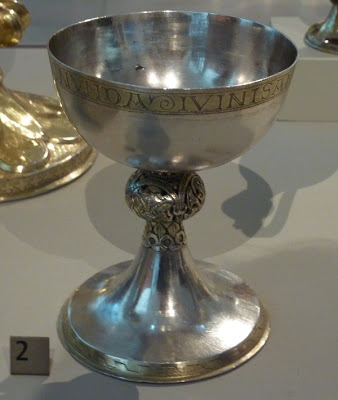 Today's research photo. Gilded silver chalice dating somewhere between 1200 and 1300. Used in the mass to contain the wine that became the blood of Christ, these vessels were made of the most precious materials.