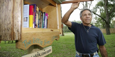 Lizzy: The Little Free Library is a new idea that is circulating around these days. One neighborly gesture turned into a global movement, and people have begun swapping stories for free. All of this is thanks to Todd Bol , who put a handcrafted box out and filled it with free books to giveaway. The idea of sharing stories without a price or promise seemed to really have a charge, and now millions of people are joining in and passing on the good word. So, here's to an inspired act of generosity that brings books to those who want to read them. Happy reading! ~ L