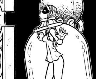 This and the next few pages took a long time to draw. People tell me I over-work my drawings, but the impulse is hard-wired. Also, I tooled with the logo a bit today. I used a font I scanned from a Dover Edition of Art-Nouveau Alphabets. I think it looks more interesting than the fonts I find in my computer and online.