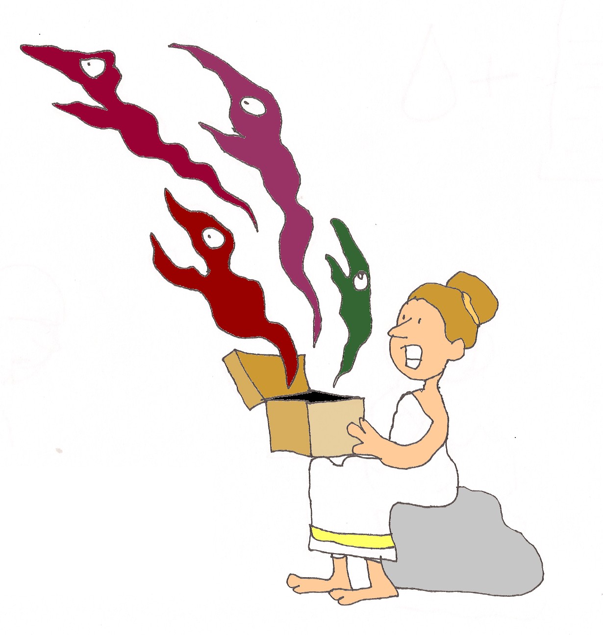 Pandora, as you recall, and if you don't recall, I'll tell you, was given a box by the gods with a single instruction, "Don't open the box!" Of course, anybody in the situation was bound to open the box sooner or later, because what's the purpose of a box in the first place unless you open it? Opening it is the purpose of the whole thing. If it doesn't open, it's not even a box, really, it's just a cube. You've probably guessed, although evidently Pandora didn't, that the whole thing was a set-up; the gods were planning to lay some heavy-duty misery on mankind, and Pandora's box was the tool they'd chosen.