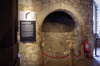 Today's research photo is of a Norman fireplace at the Tower of London, which Ailnoth would have known, and where Henry II and Alienor of Aquitaine among others would have warmed themselves on occasion. I love the modern placement of a fire extinguisher! Click to enlarge.