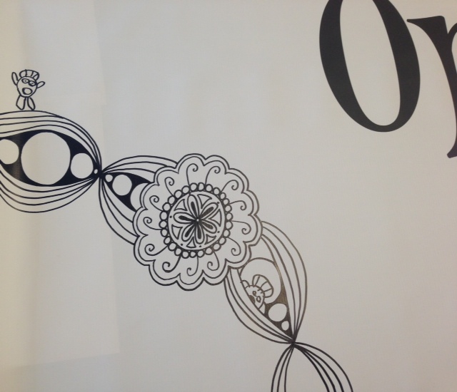 I designed the banner with a big, empty space on the left side so I could tangle it by hand. I thought it might be hard to get around to actually doing the work, but this weekend, Lilah and I unrolled the banner - and it completely covered the classroom table! What really inspired me to start was Lilah begging me to let HER do it!