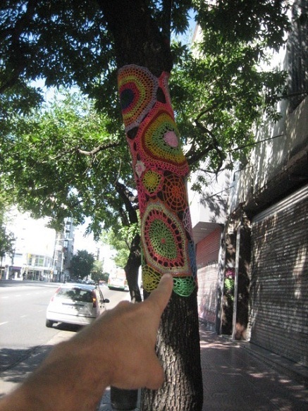Desinterés n° 22: Árbol que le pusieron un vestidito de crochet para promocionar un negocio de lanas e hilos