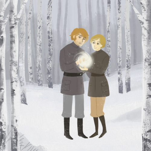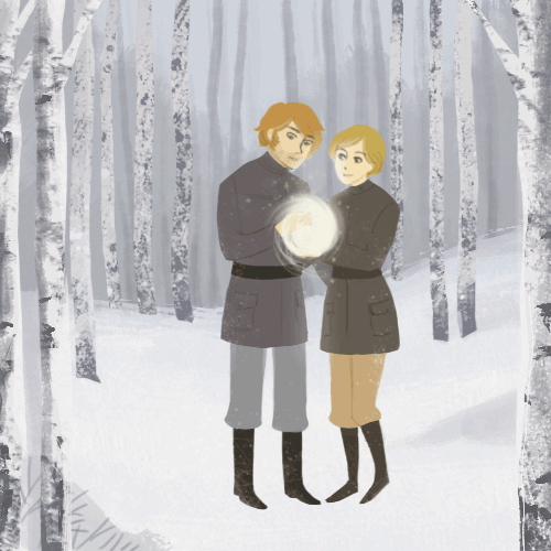 I took some artistic liberties — this scene doesn’t actually take place in the woods but I really wanted to draw birch trees! They are just so pretty *_* And I totally left out their warm fur coats… in the book they are all huddled and freezing, oops.