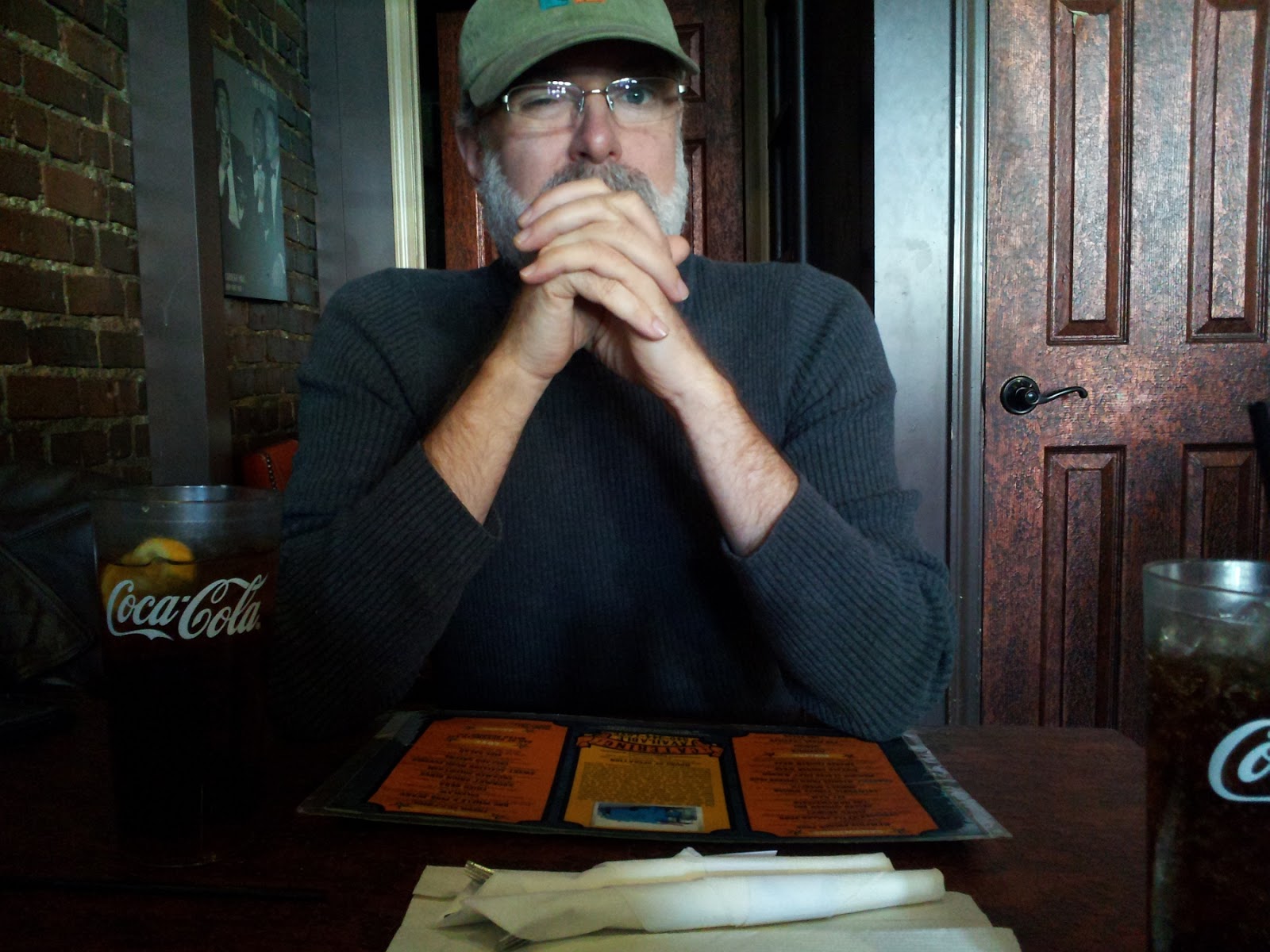Old dude at the leaning table, Blues BBQ Company, Roanoke, VAShevacon 21 officially ended today, and my final activity in Roanoke was to have lunch with Brugger at The Blues BBQ Company, on Market Street, which served us the best barbecue I think I've ever tasted... and that's saying all kinds of something. The restaurant is in a very old building, and the floor clearly sags in places; our table leaned at an angle of about five degrees, which made for a most entertaining lunch experience — and, as the young lady said, it would have been even more fun if we'd had marbles to play with.This year, I ended up spending less time than usual at the con and more time wandering Roanoke with Kimberly — snagging geocaches when appropriate, of course. I did participate in four panels, which all went swimmingly, and I quite enjoyed the dealers' room and art show. By all accounts, the programming went smoothly this year, with panels commencing and ending right on time, and con personnel typically on hand to reign in out-of-control aliens (though it did appear that a squad of Imperial stormtroopers crashed a Mardi Gras party in one of the banquet rooms; I hope there was no shooting, for the stormtroopers wouldn't have had a prayer). I understand the judges of the costume contest dilly-dallied far too long, but that particular activity is one for which I have little affinity, so I did not experience this frustration firsthand. My compliments to programming director Jeremy Stroup and his team, who evidently had things well in paw this year.