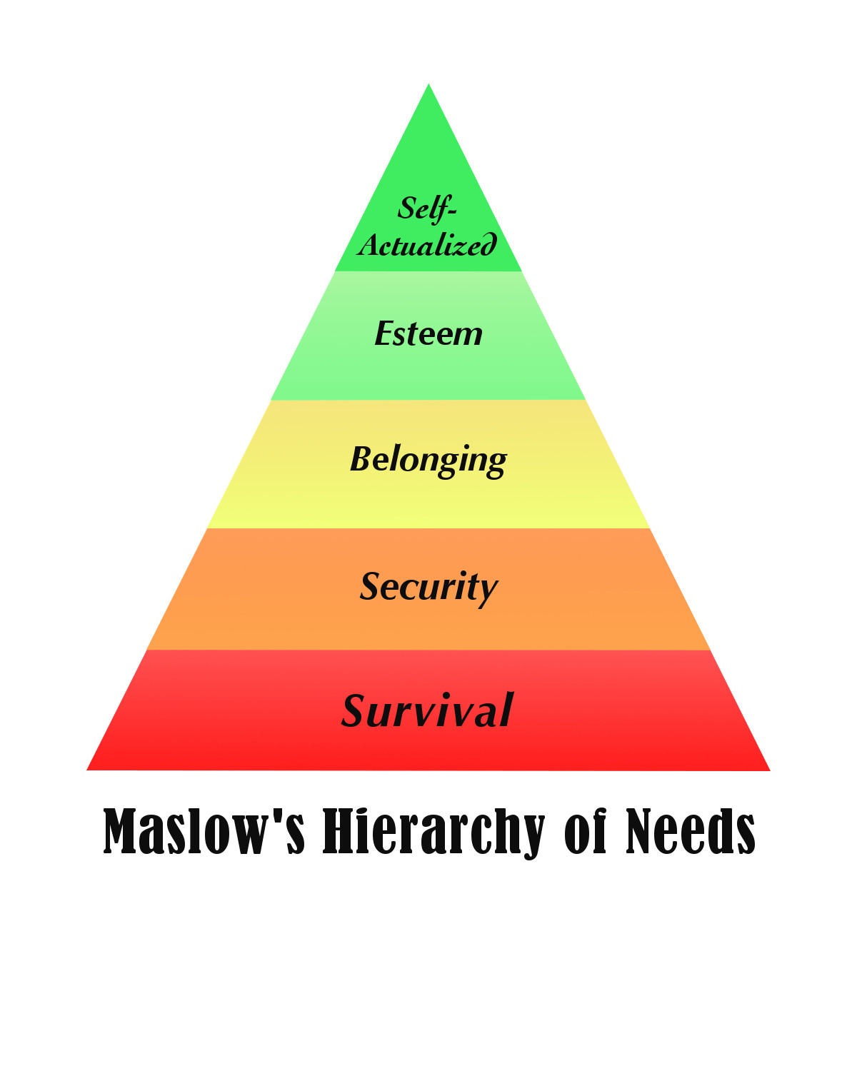 Maslow’s Hierarchy creates a pyramid. The more vital something is to survival, the closer it is to the base.As a theory, it has some obvious holes. It implies that there could be no art without a steady food supply. There is no mechanism in the theory for either heroism or death poems. It also implies that these levels are something we work through from the base upwards when, in reality, our ancestors took care of the two lowest levels long ago and we are almost all born into a group.So, in my opinion, as a theory it’s crap. As a model, however, Maslow’s pyramid is extremely useful for anyone who deals with conflict. If someone has multiple problems, they will deal with the lowest level first. When a tiger is chewing on your leg, you really don’t give a damn about your relationship issues or unresolved maternal relationship problems.Conflicts stemming from different levels have different patterns.Survival Level. If you are drowning or under attack with a knife, the skills you need are unrelated to the skills you need for a promotional exam. The resources that your body and mind can bring to bear are also very different. They are completely different problems.Nothing you have learned about sales or mediation will help you hunt, grow or steal food. Conversely, if you go into mediation as a hunter or thief, it will probably not work out so well.For most people in the industrialized world, the bottom two levels of the pyramid have never been a concern. It has been almost a century since Americans had to worry about winter starvations or an epidemic killing thousands of people. It has been sixty years since Western Europeans have experienced invading armies.Security Level. Shelter, food, water. Also savings accounts, insurance and retirement plans. There is not a lot of fear at the security level in our society, but there is a lot of anxiety, and that drives some conflict. You can see Union/Management issues this way, as well as some arguments between spouses.When big problems, like starving or being eaten alive by bears fade, energy goes into other concerns.