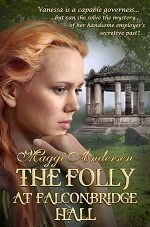 When Vanessa Ashley takes on her role as governess to Lord Falconbridge’s daughter, she finds more than she bargained for at Falconbridge Hall. Secrets and questions abound related to the death of Julian, Lord Falconbridge’s, wife and the hasty departure of the previous governess. Lord Falconbridge himself is also mysterious, at times surprisingly demanding and other times a doting father to his daughter, Blythe. When Julian departs on one of his foreign expeditions, Vanessa acknowledges her growing affection for him, but she is left to uncover the mystery of Falconbridge Hall alone in order to protect herself, Blythe, and their future as a family.