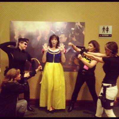 Here I am as Snow White who has wandered into the wrong film.