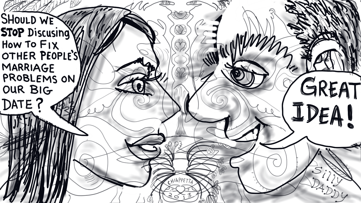 "Should we stop discussing how to fix other people's marriage problems on our big date?" asks the wife.