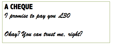 Surely, though, it's worse for the company making the payment? No, no, and thrice no. They too have lower costs by using electronic payments. Their bank will charge them for each cheque they write, but may not charge for paying this way. The company has to produce the paperwork to accompany the cheque and to post the whole thing. They have to get a director or someone else important to append their pretty signature. There's the cost of postage and of the admin effort required. Okay, the one advantage of the cheque is for their cashflow - they get to hold onto their money a few days longer - but with interest rates what they are, this is no great benefit.