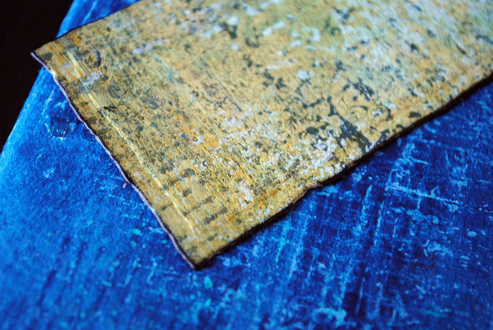 I chose a different color of hand painted paper and made one more die cut using a different die from the Distressed Edges set. I cut that piece in half.