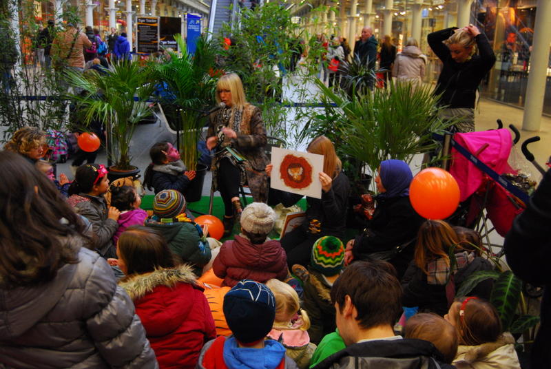 At St Pancras International Station - Save the Wild TigersIt was thanks to a tweet by Orion children's author, Lauren St John, that I learned of the Tiny Tracks event - a children's weekend amongst three weeks of Tiger Tracks events, and their call for authors to come along and read stories to children at St Pancras Station. I volunteered, thinking I'd be one of many and probably not chosen, so you can imagine how delighted I was to hear that they wanted me to do two sessions of stories!