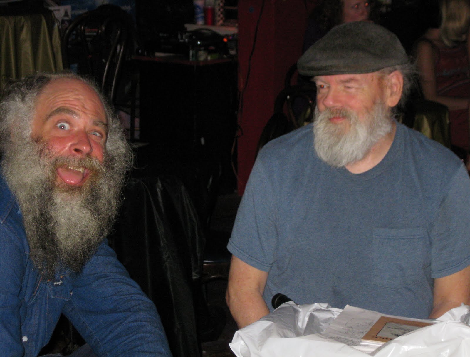 Blaster with fellow storefront preacher, Father Higgs, in the legendary 14 Karat Cabaret during a Normal's Books & Records anniversary show/ party. Photo by Liquid Borgnine.