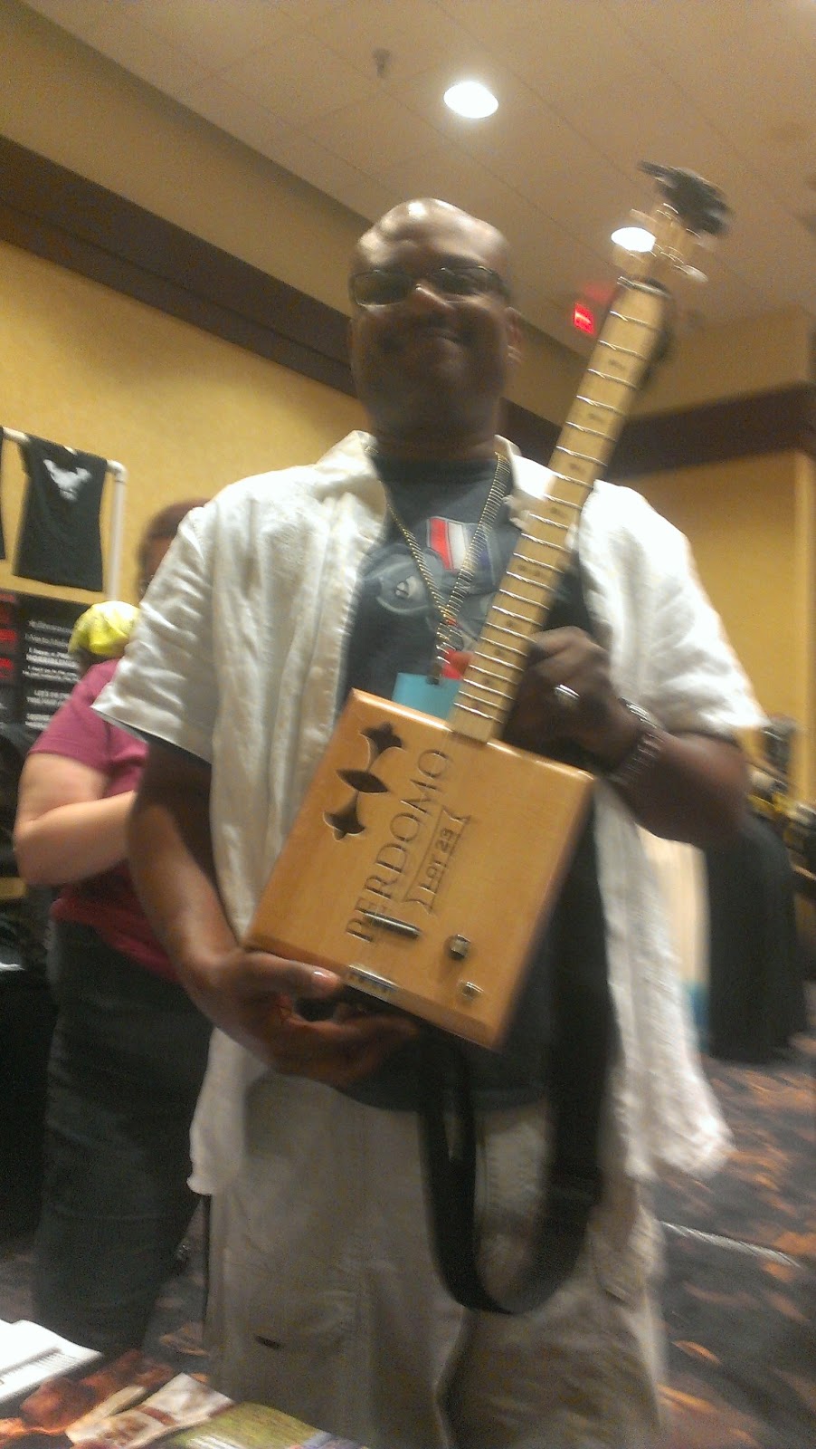 This was pretty cool. He made that cigar box guitar and yes, it does play.