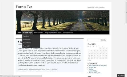 Now, have a look at your website. Here’s the menu we just made, it’s on a newly-installed theme and has no other content, but what it does have is a navigation bar customised for exactly the pages I fancy having on this website.