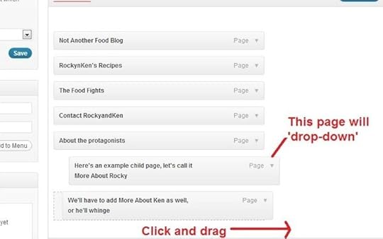And I also want to move the ‘child’ pages to the drop-down position, that’s another click and drag and they will click into place for you as you move them to the right.