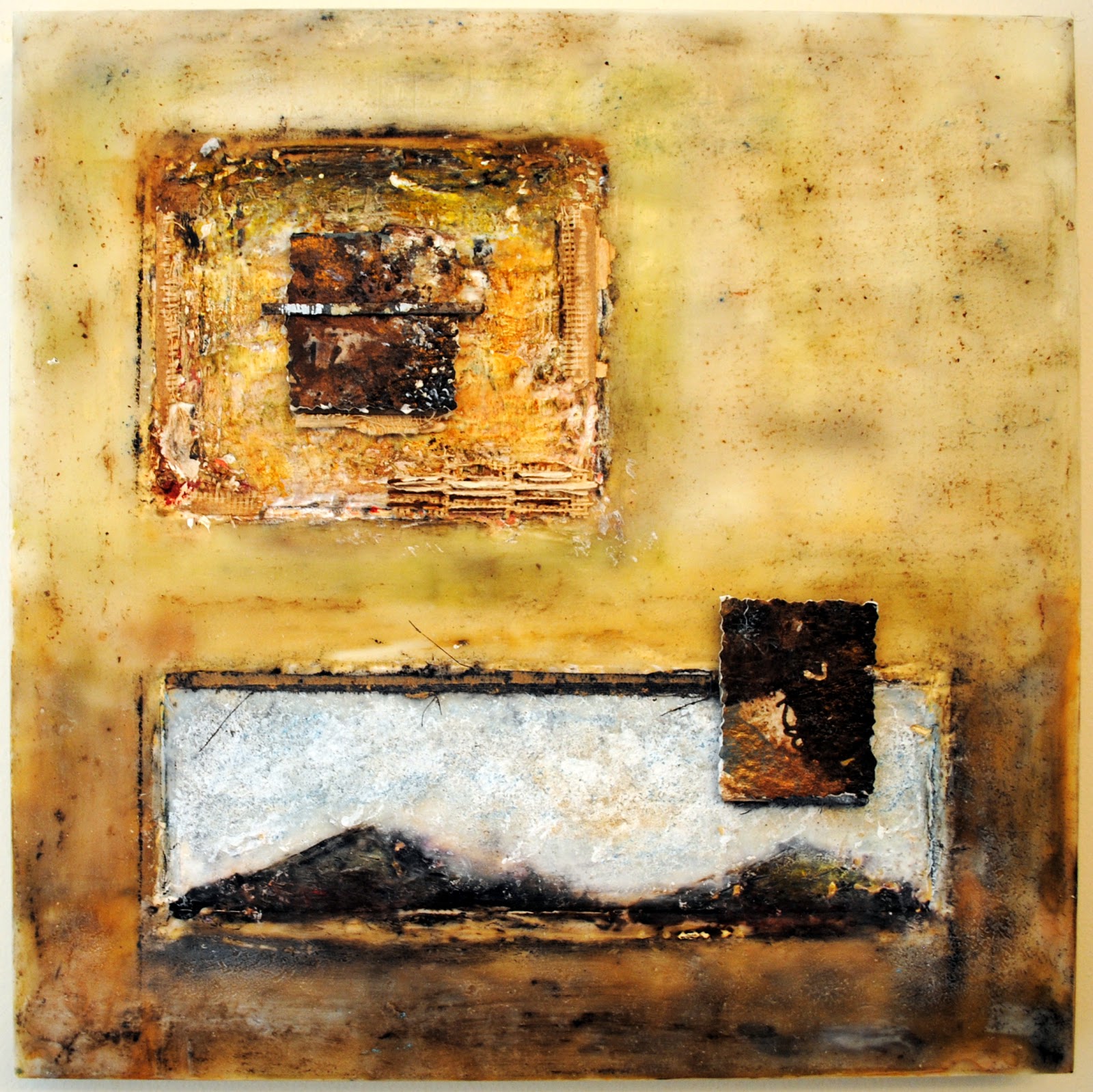 From a distance you will see beautiful abstract paintings... deep and mysterious... but on closer inspection layers, textures and colors will unfold, pulling you closer for examination.