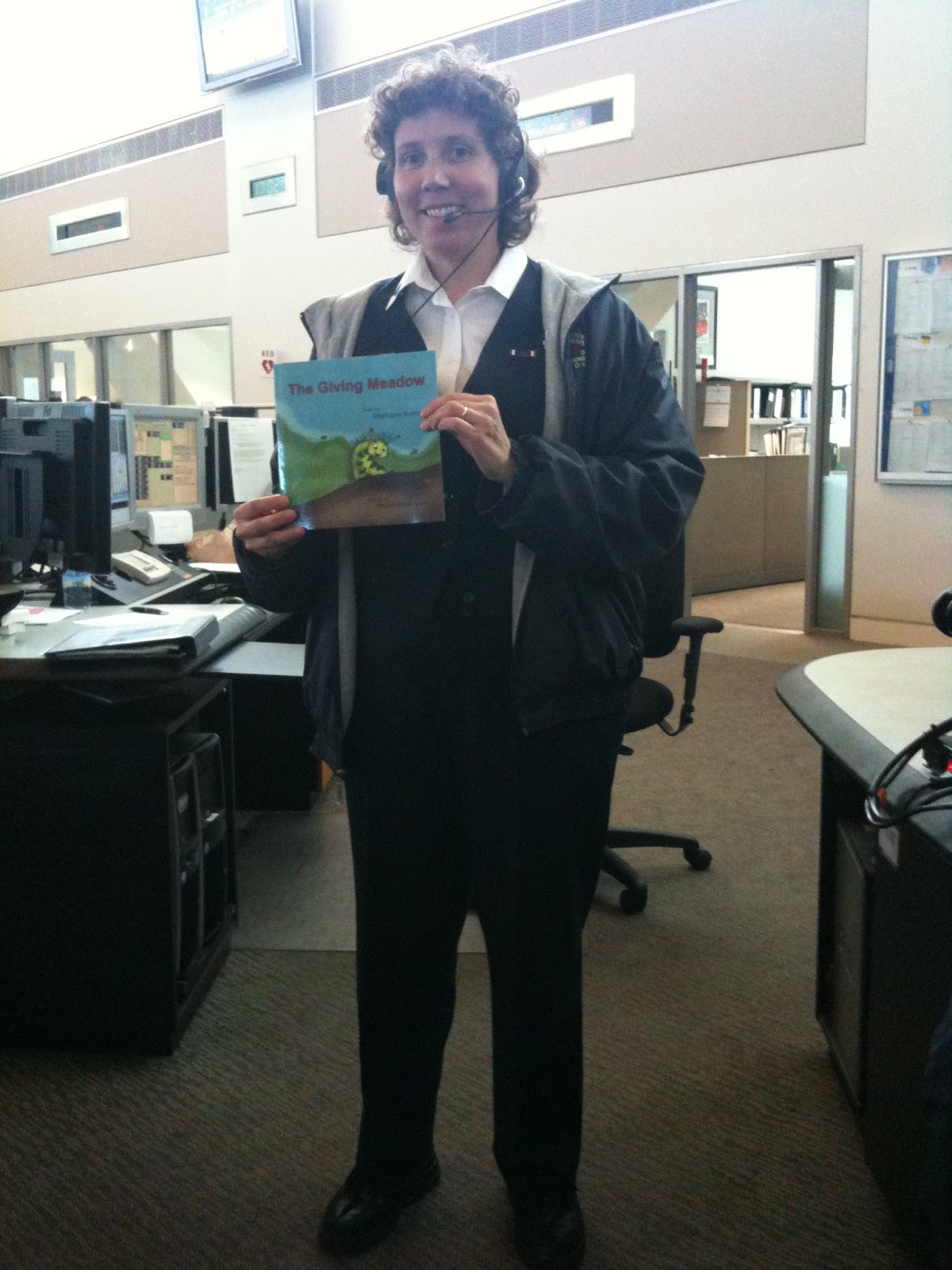 Me at work, holding my children's bookIt's National Dispatcher's Week. Hug a dispatcher if you have a chance. JAll right, the unknown voice on the line wouldn't mind a letter or a simple "thank you," either.