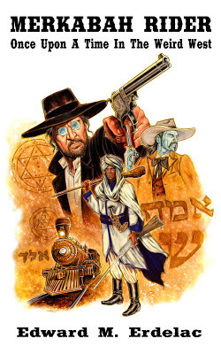 This month saw the release of Merkabah Rider 4: Once Upon A Time In The Weird West, the last installment of my Judeocentric weird western series. For those unfamiliar with it, it’s about a Hasidic gunslinger tracking the renegade teacher who betrayed his mystic Jewish order of astral travelers to the Great Old Ones of the Lovecraftian Mythos. Along the way, the Rider (so-called because members of his order, The Sons of The Essenes, assume a title to obfuscate their true names from malevolent spirits) encounters half-demon outlaws, a mystic cannon, a brothel full of antediluvian succubi, shoggoths, invisible monsters, Doc Holiday, zombies, an undead gunfighter constructed from the body parts of famous outlaws, and a pissed off animated windmill among other dangers.