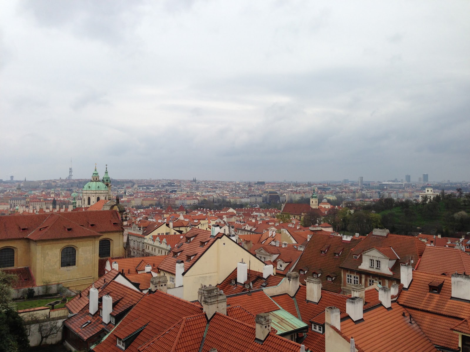 Today instead turned into reconnoiter-Prague-Castle day. The castle is fairly close to the hotel as the crow flies, but the crow doesn't have to walk up the hill. Cabs can take you there, but that wouldn't be in the walking spirit of this trip, so with a pause for a quick lunch, in the early afternoon I walked the streets and switchback to the castle.
